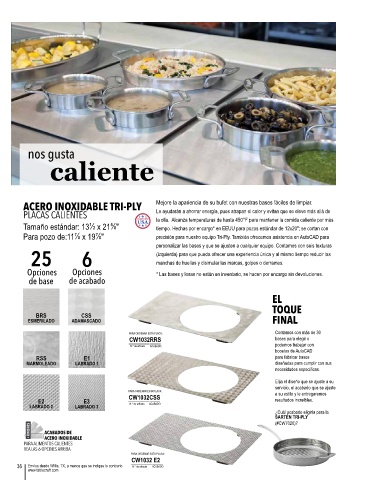 ACERO INOXIDABLE TRI-PLY Mejore la apariencia de su bufet con nuestras bases fáciles de limpiar.