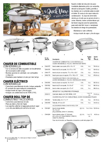 • Muchas opciones de calentado: con combustible b. CW40177 Inserto circular con soporte, 17¼ x 19½ x 12¼" 3.8 L 1 c/u 512.00 c/u