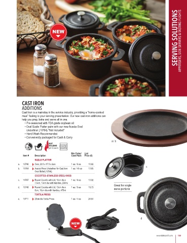 meal” feeling to your serving presentation. Our new cast iron additions can