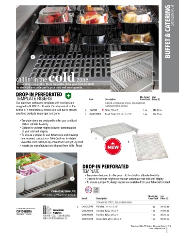 bottom of a mechanically cooled cold food bar to present a. CW1008 12⅞ x 19¾ x 2" 1 ea 210.00 ea