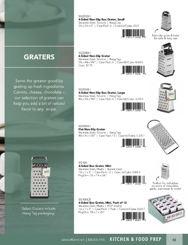 Select Graters include 1½ x 1 x 3" | Case Pack: 1 Pack | Case Lb/Cube: 0.6/0.1